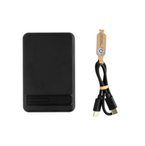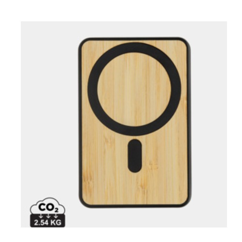 Batterie de secours 5000mAh avec chargeur magnétique sans fil de 5 W et boîtier en plastique ABS recyclé certifié RCS et en bambou certifié FSC/RCS (Recycled Claim Standard) est une norme qui permet de vérifier le contenu recyclé d’un produit tout au long de la chaîne d’approvisionnement. Contenu recyclé total : 22 % sur la base du poids total de l’article.