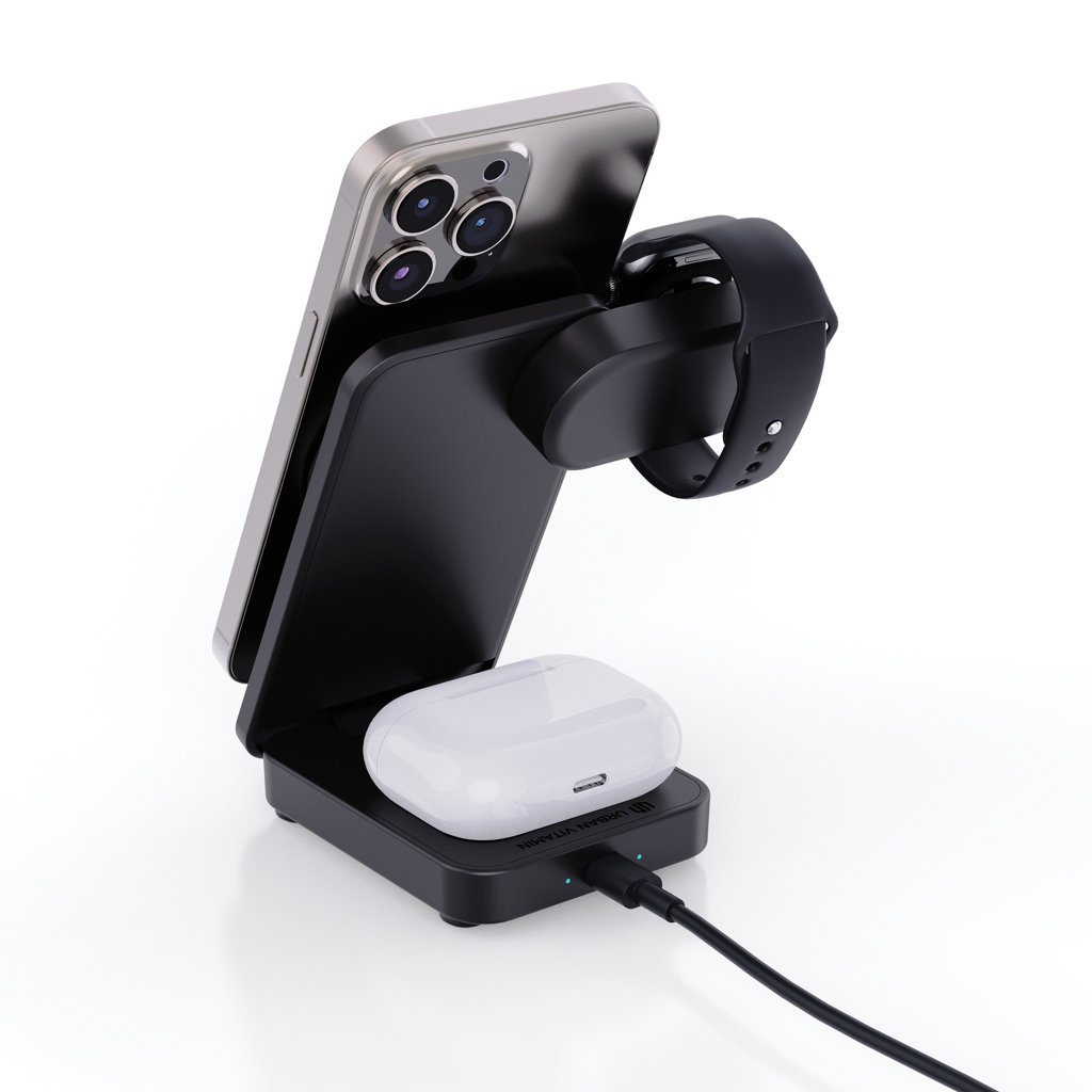 Vous avez besoin de charger tous vos appareils en même temps et à pleine vitesse ? Arcadia a tout prévu avec son chargeur magnétique ultra-rapide de 15W. Ce chargeur sans fil compact peut être utilisé sur votre bureau, mais il est également très facile à plier pour l’emporter en voyage. L’arrière est équipé d’un socle de chargement de 5 W qui vous permet de recharger un deuxième téléphone ou des écouteurs. Pour couronner le tout, utilisez le chargeur de montre pour alimenter les dernières générations d’iWatch. Arcadia est livré avec un câble TPE recyclé de 120 cm pour une installation facile partout où vous le souhaitez. Il suffit de le connecter à une source d’alimentation à charge rapide (minimum 9V/2A) pour démarrer. Il est fabriqué en ABS recyclé certifié RCS (Recycled Claim Standard), avec 34 % de contenu recyclé par rapport au poids total de l’article. Les articles Urban Vitamin sont fabriqués sans PVC et emballés dans des emballages à teneur réduite en plastique.