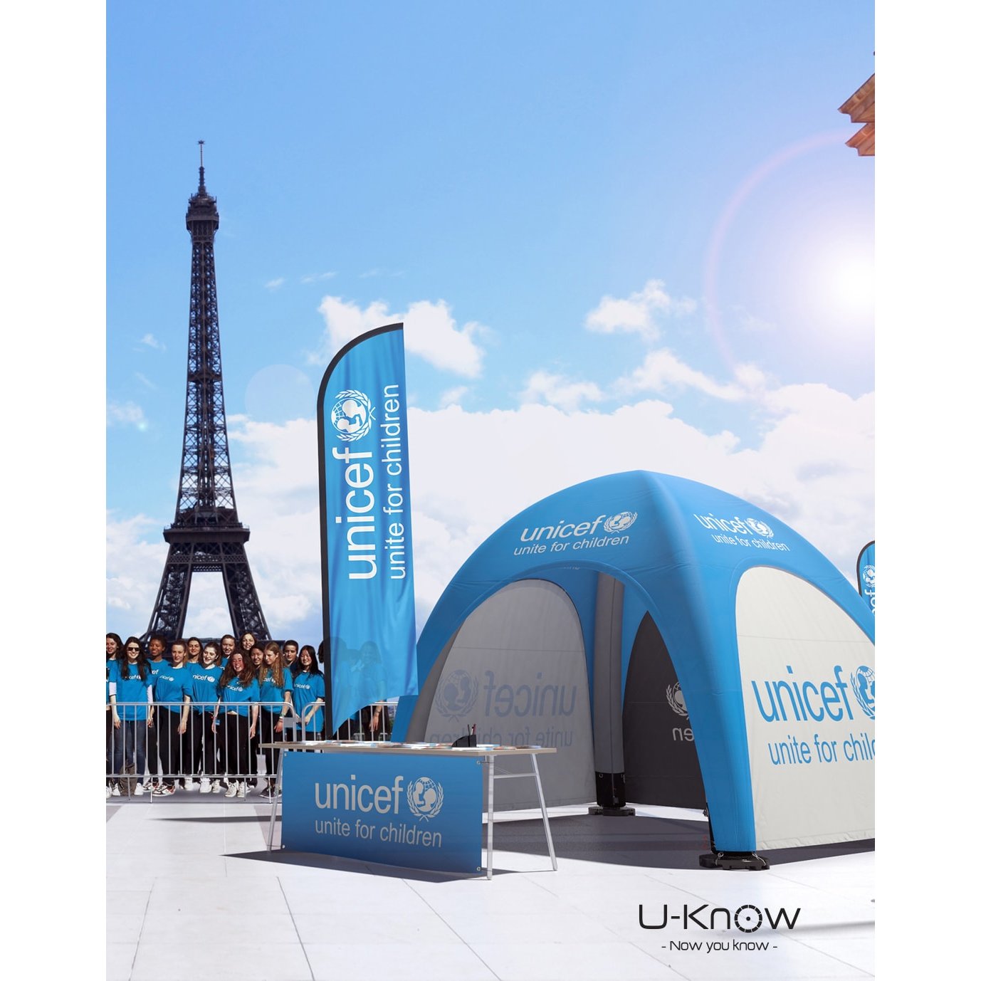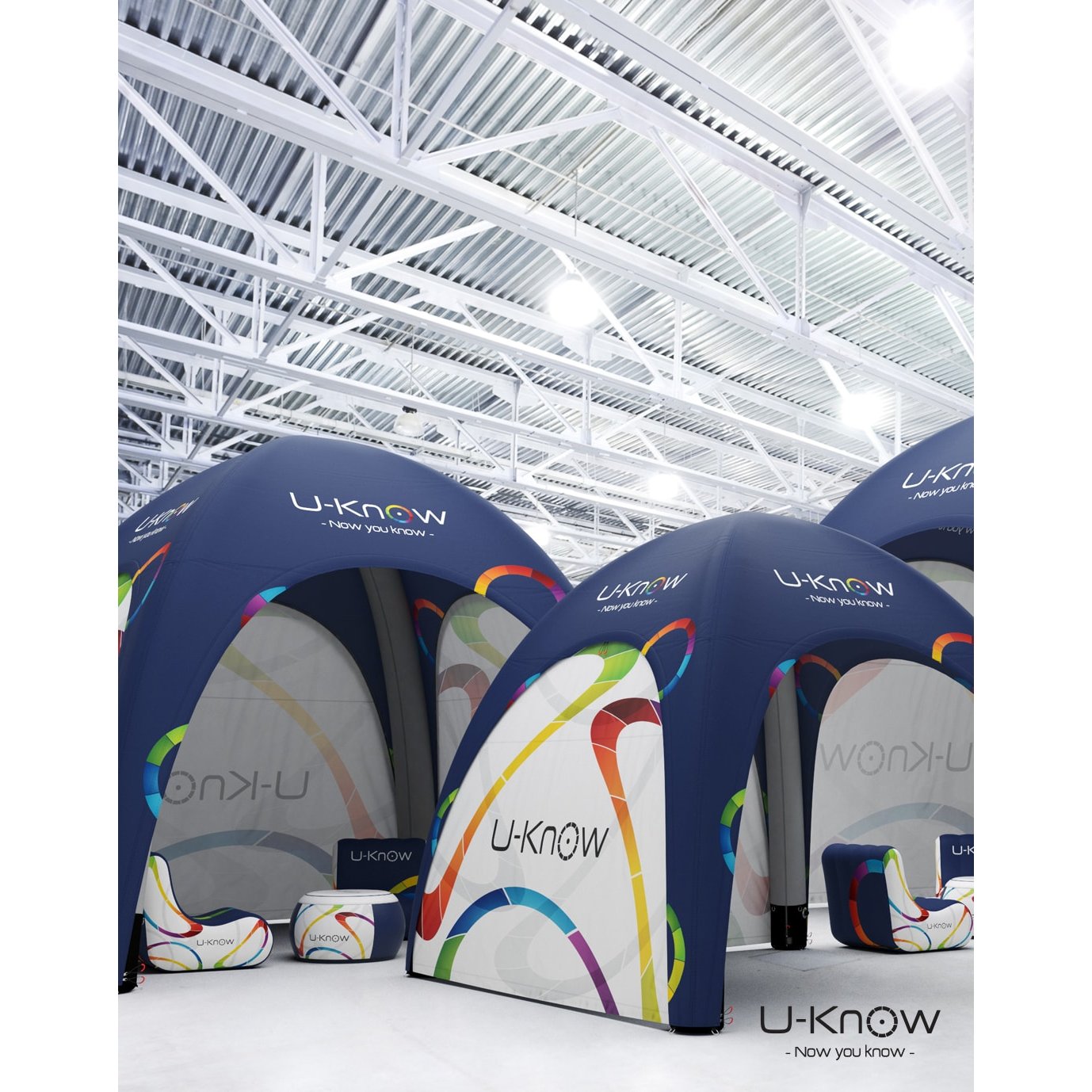 La tente est livrée avec son sac de transport, des sardines et des cordes de fixation. Lors de la configuration de votre tente, vous pouvez sélectionnez une structure REGULAR sur stock (4 coloris dispo, livrée en 3 jours) ou une structure ALLOVER avec son toit imprimé en quadri allover (livrée en 3 semaines). Cette nouvelle tente gonflable bénéficie d’une technologie nouvelle : d’un côté, une structure triple peau ultra-légère, de l’autre, un textile avec membrane garantissant l’élasticité, l’étanchéité et la personnalisation totale de la tente (finition ALLOVER). Toutes les coutures sont soudées et étanches. Traitement Anti-feu norme CPAI 84 pour utilisation en intérieur. Le montage est réalisable en 5 minutes. Possibilité de poser des transferts au format A3 sur le toit et au-dessus des portes. Vous pouvez connecter vos tentes en utilisant les connexions dans le coloris que vous souhaitez : il existe des connexions entre Tentes 3x3m et également avec une Tente 4x4m. Nous consulter